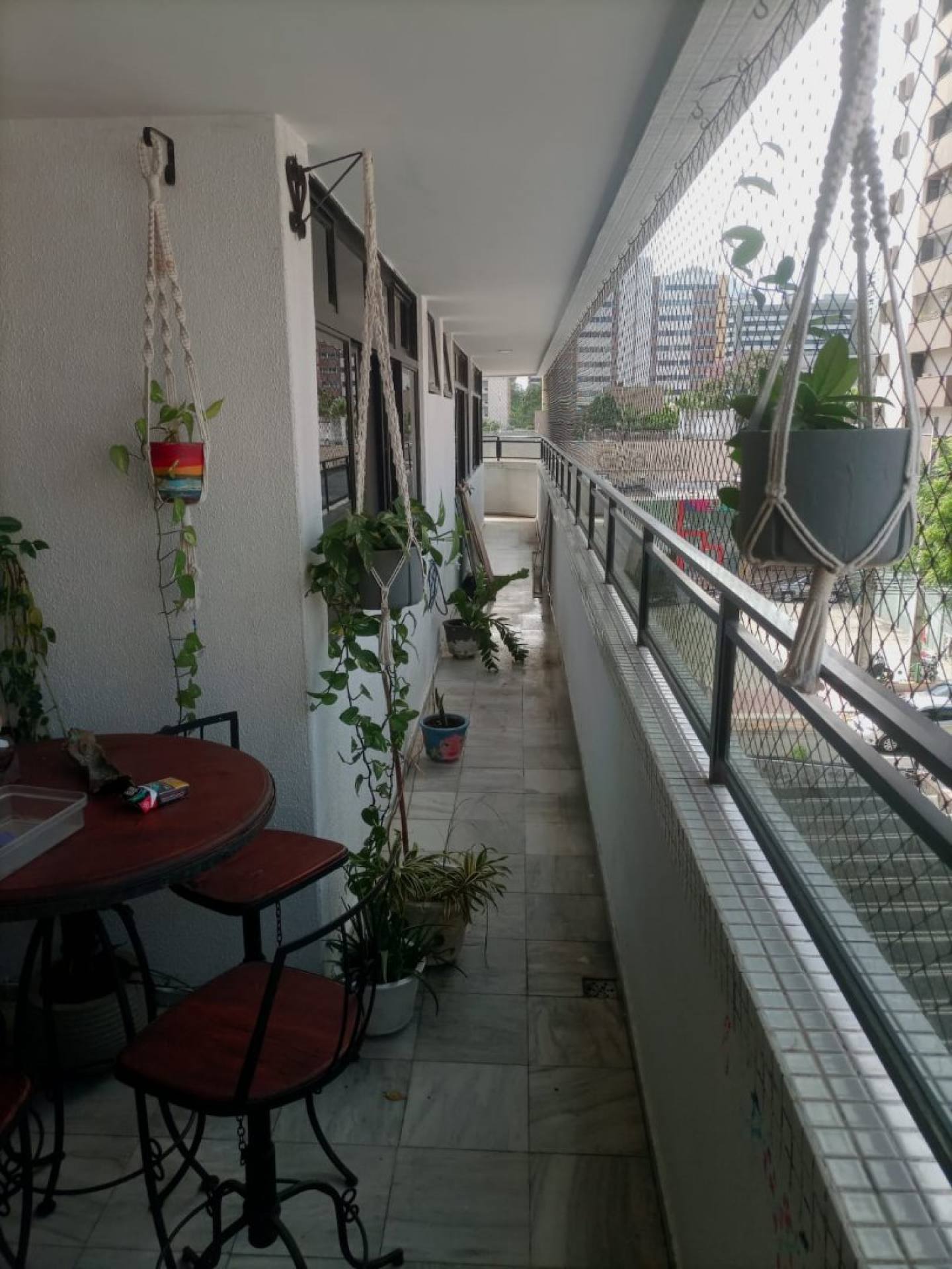 Apartamento de 240 metros quadrados, na Aldeota, com 4 quartos, sendo todos suites, banheiro social, área de serviço com despensa, cozinha, escritório, ampla sala, garagem para dois carros, área comum com academia e salão de festas.